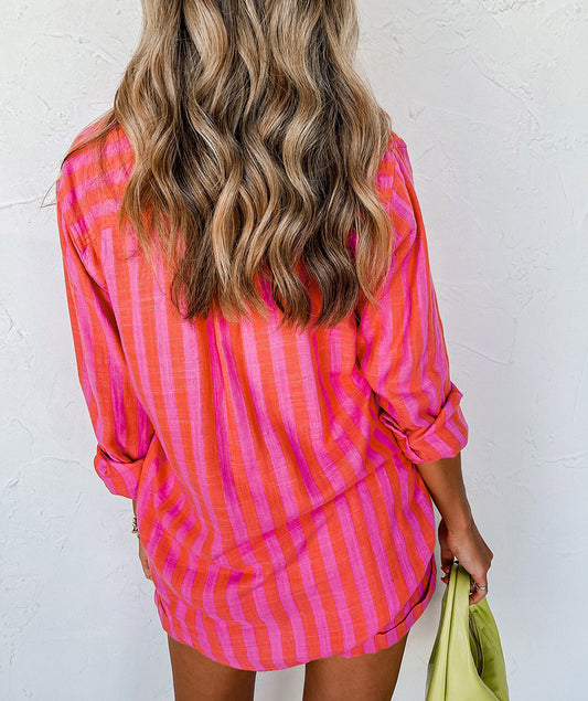 Striped Colorblock Drop Shoulder Slouchy Cardigan
