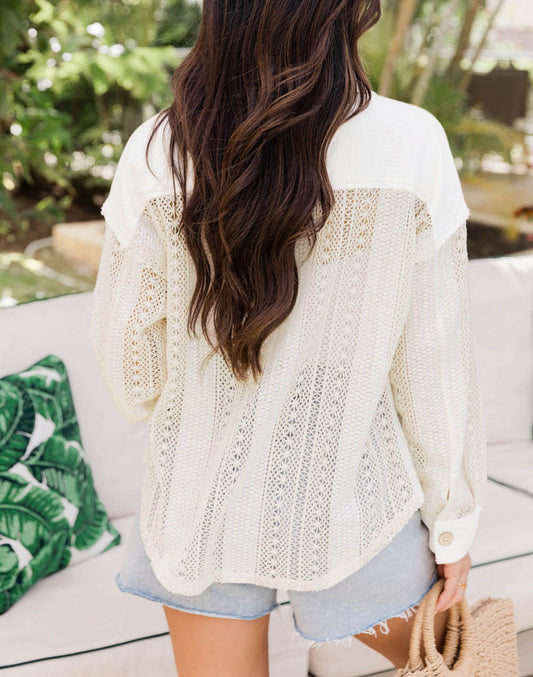 Split Neck Hollowed Lace Trim Babydoll Blouse
