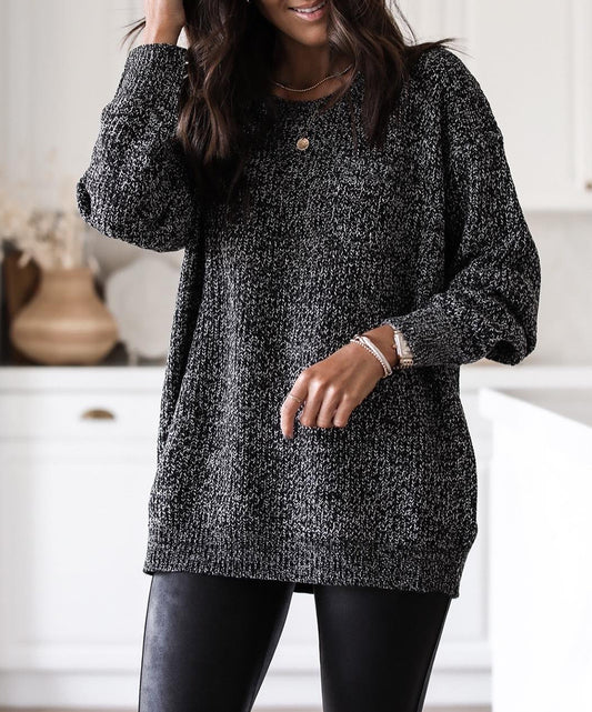 Textured Knit V-Neck Bishop Sleeve Sweater Dress