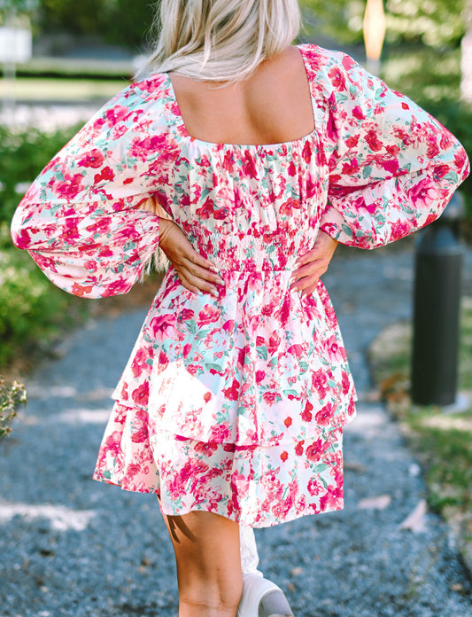 Ruffle Tiered High Waist Puff Sleeve Floral Dress