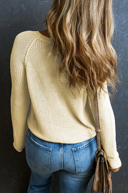 Hollowed Eyelets Knit Bell Sleeve Sweater