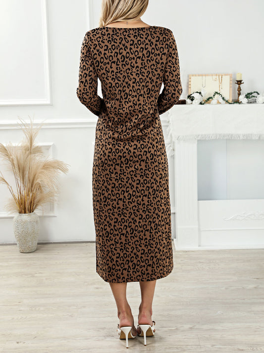 Contrast Leopard Long Sleeve Pullover and Joggers Outfit