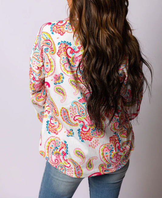 Paisley Pattern Print Buttoned Corduroy Shacket