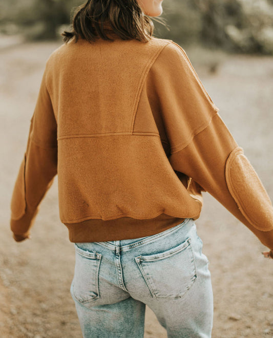 Zip Collared Big Flap Pocket Exposed Seam Sweatshirt