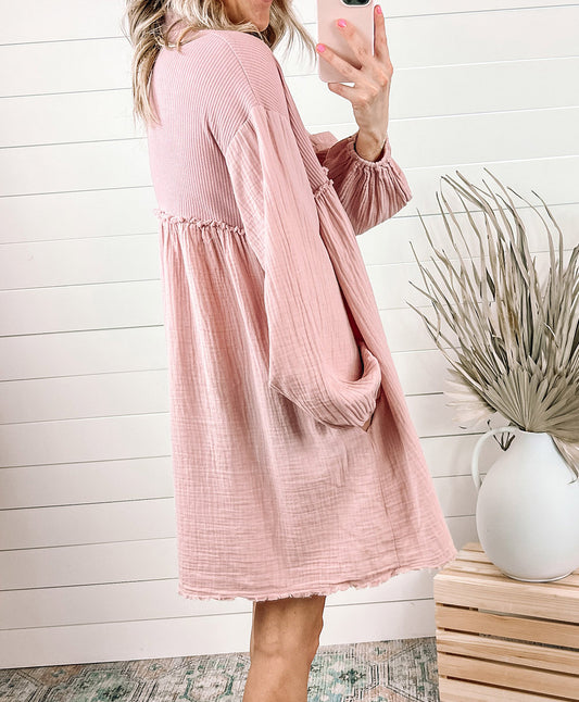 Patchwork Crinkle Puff Sleeve Shirt Dress