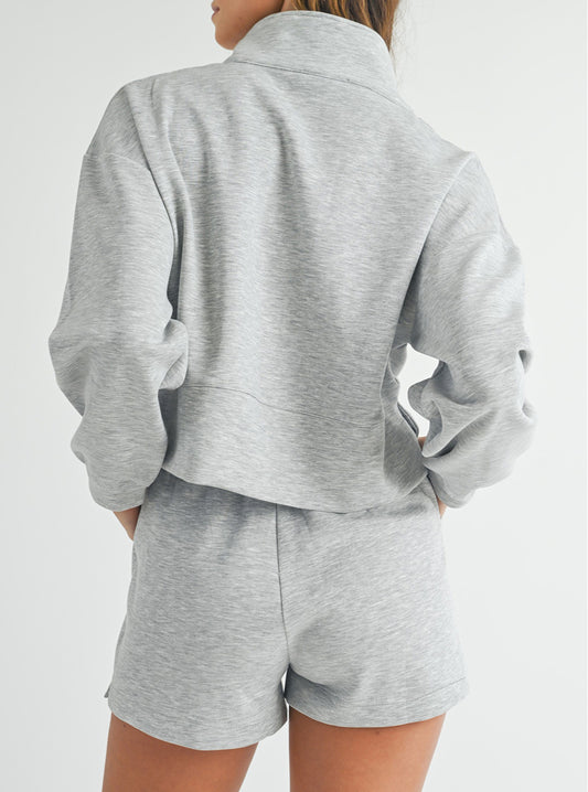 Stand Neck Zipped Sweatshirt and Shorts Set