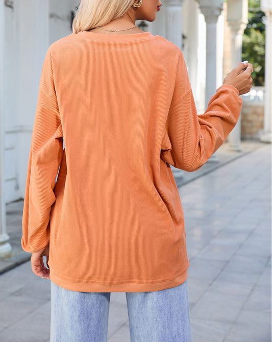 Stripe Crew Neck Drop Shoulder Casual Sweater