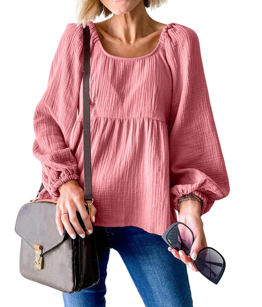 Apricot Western Print Balloon Sleeve Tassel Blouse