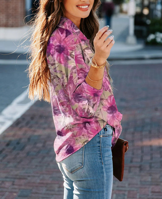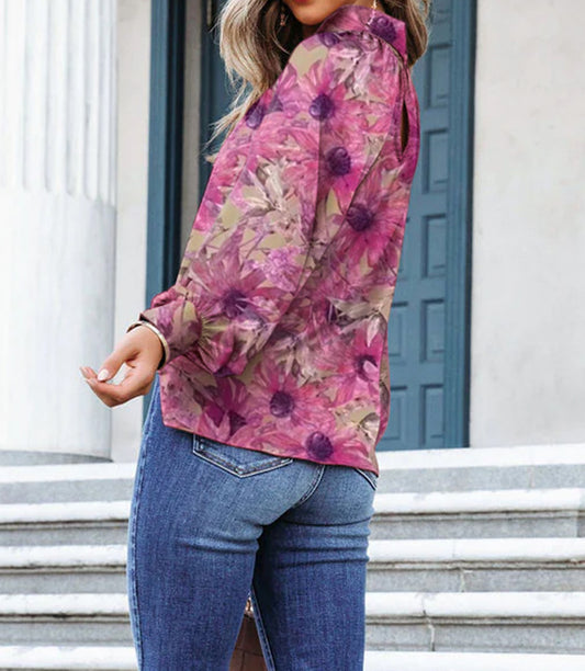 Turn-down Neck Floral Print