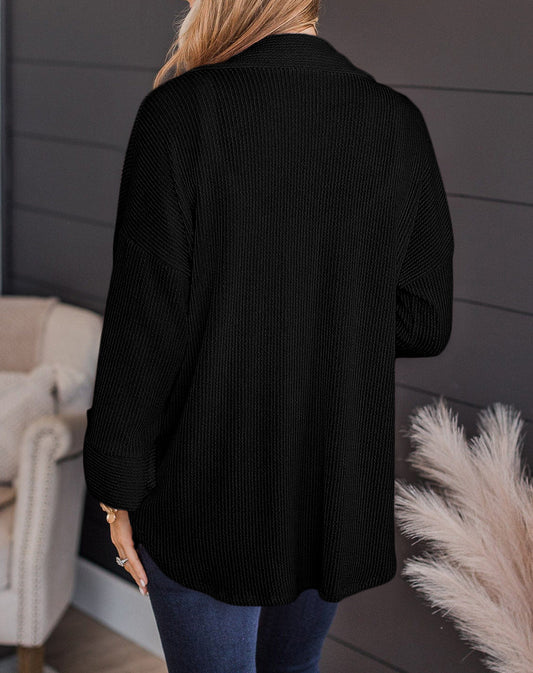 Solid Color Off Shoulder Rib Knit Sweater with Pocket