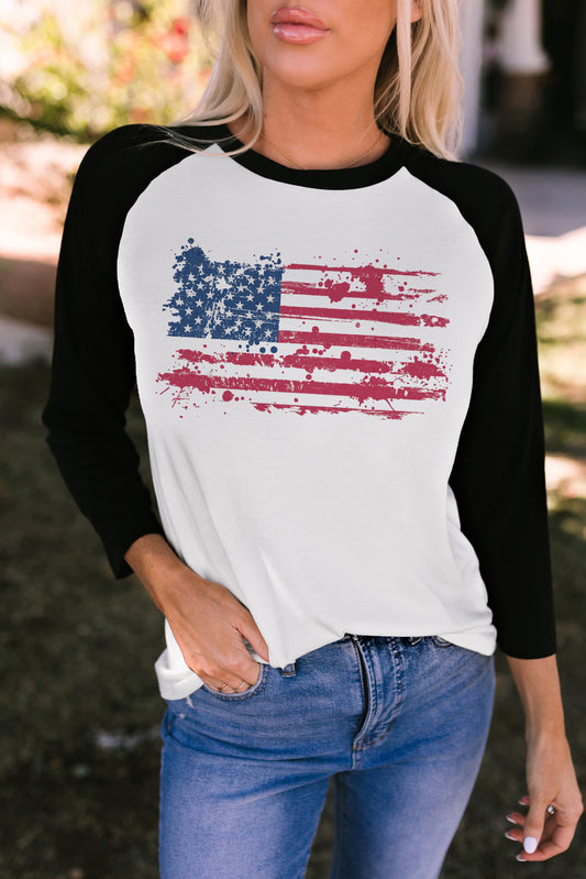 American Flag Raglan Long Sleeve Graphic T Shirt
