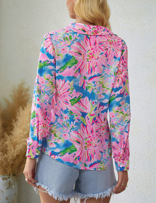 Abstract Floral Print Buttoned Sheath Long Sleeve Shirt