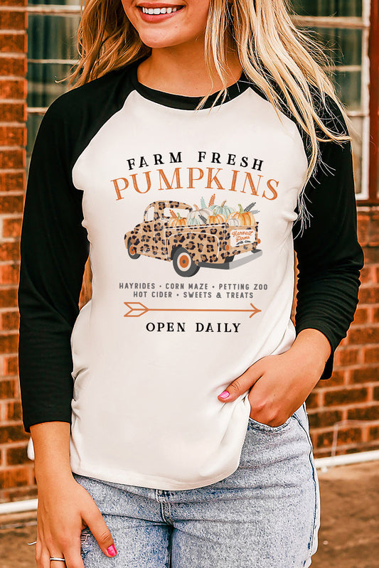 FARM FRESH PUMPKINS Graphic Raglan Sleeve Top