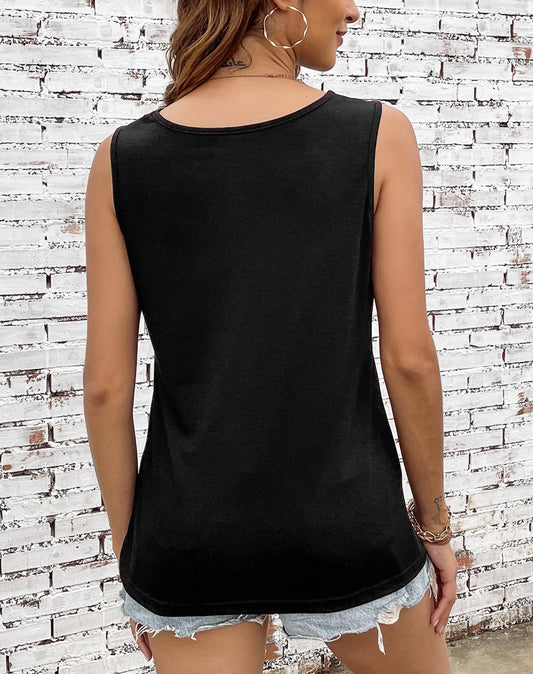 Ribbed Knit Buttoned Henley V Neck Tank Top