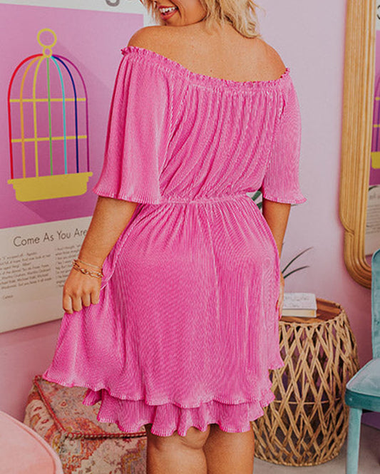 Ruffled Off Shoulder High Waist Plus Size Mini Dress