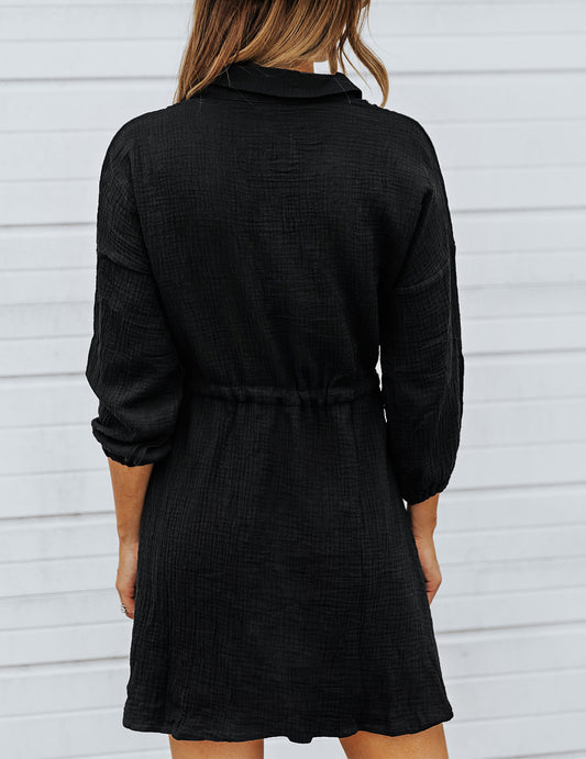 Corduroy Buttoned Long Sleeve Shirt Dress