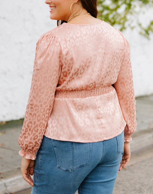 Pink Plus Size Leopard Satin Peplum Top