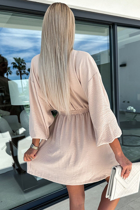 V-Neck Long Sleeve Waistband Dress