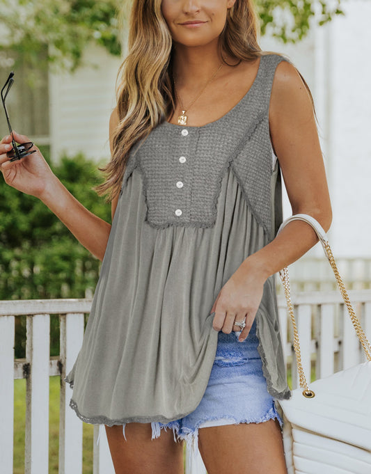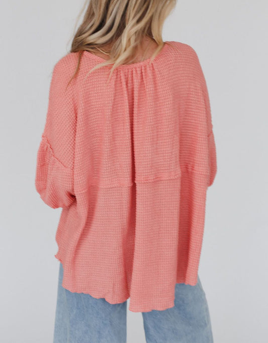 Pink Waffle Knitted Lace Trim Short Sleeve Top