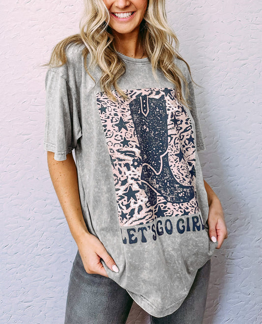 Gray Let\'s Go Girls Cowboy Boots Graphic Tee