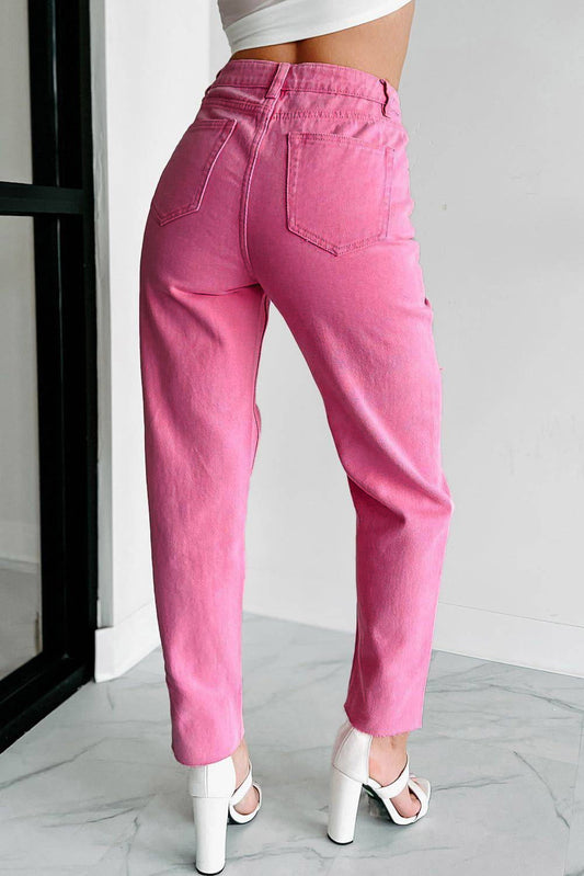 Star Shape Patchwork Mid Waist Straight Leg Jeans