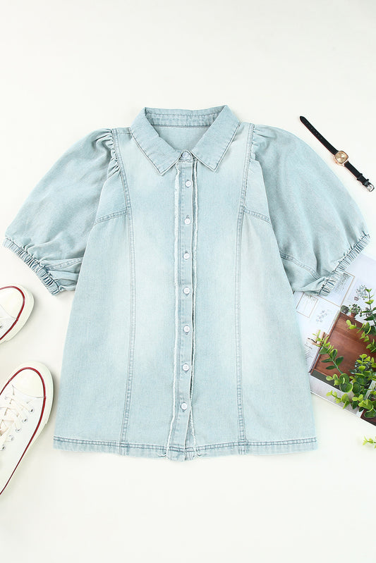 Shirred Cuff 3/4 Sleeve Loose Fit Floral Blouse