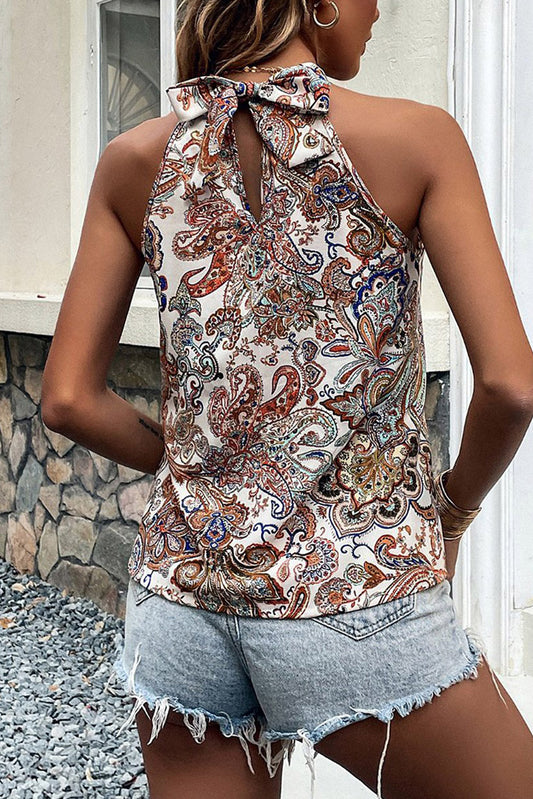 Apricot Paisley Print Back Bow Sleeveless Top