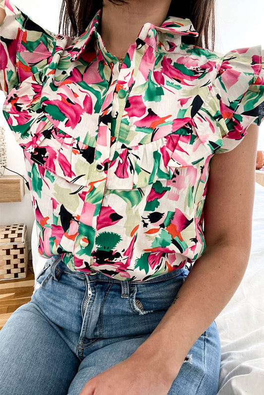 Multicolor Floral Print Patchwork V Neck Tank Top
