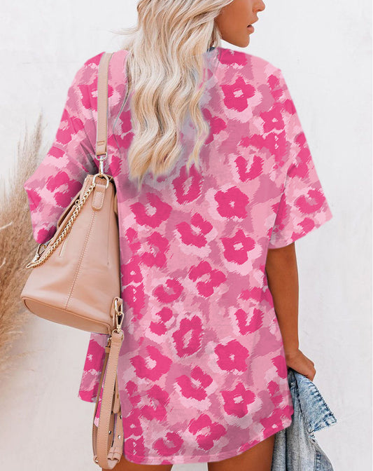 Pink Leopard Print Half Sleeve Oversized T Shirt