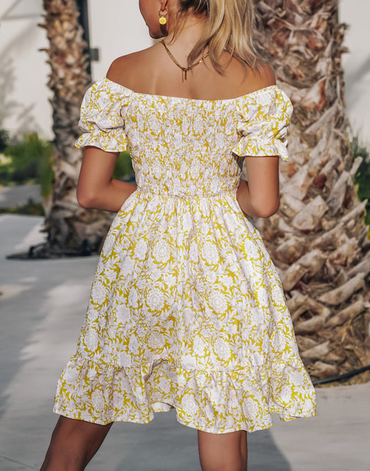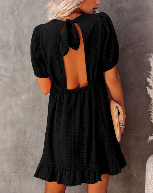 Checkered Pattern Puff Sleeve Babydoll Dress