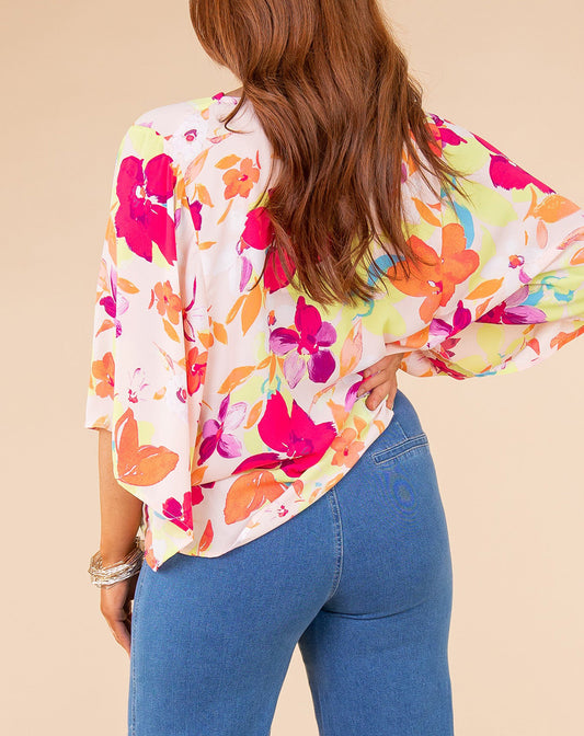 Multicolor Floral Print Cowl Neck Plus Size Blouse