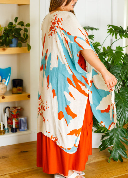 Sky Blue Plus Size Abstract Print Sweeping Kimono