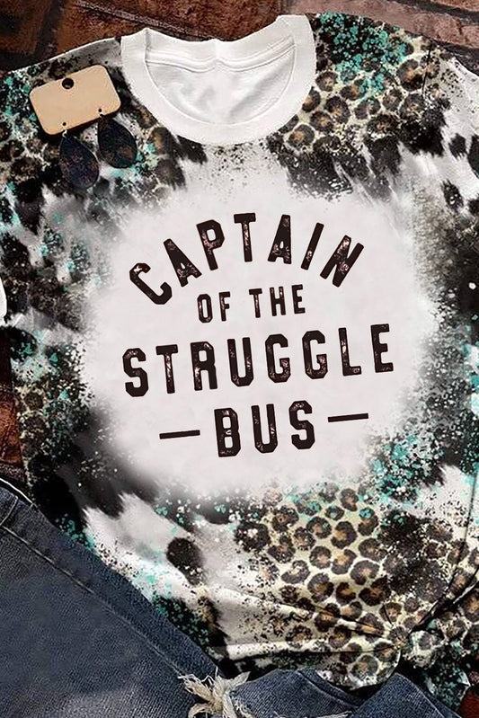 Leopard CAPTAIN OF THE STRUGGLE BUS Bleached Graphic Tee