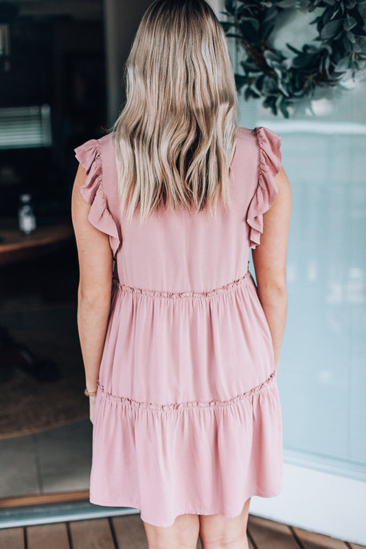 Pink Ruffle Trim Sleeveless A-line Mini Dress