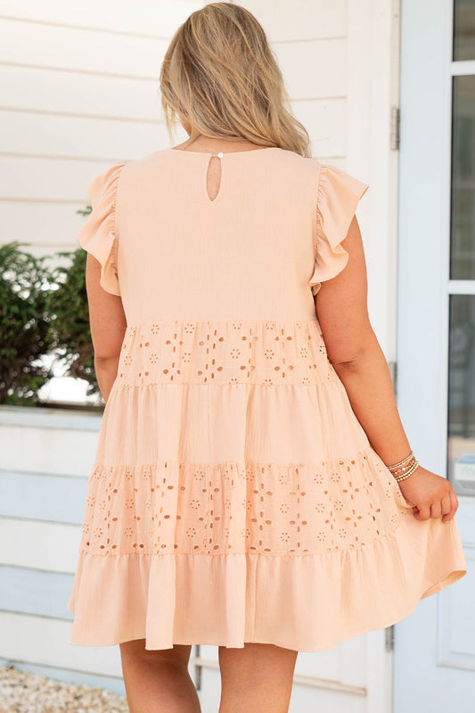 Orange Broderie Anglaise Patchwork Tiered Curvy Dress