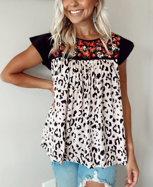 White Flutter Sleeves Embroidered Floral Babydoll Flyaway Top