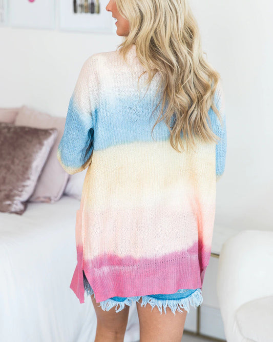 Rainbow Ombre Buttoned Cardigan with Pockets