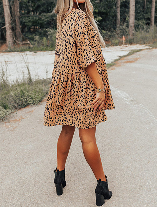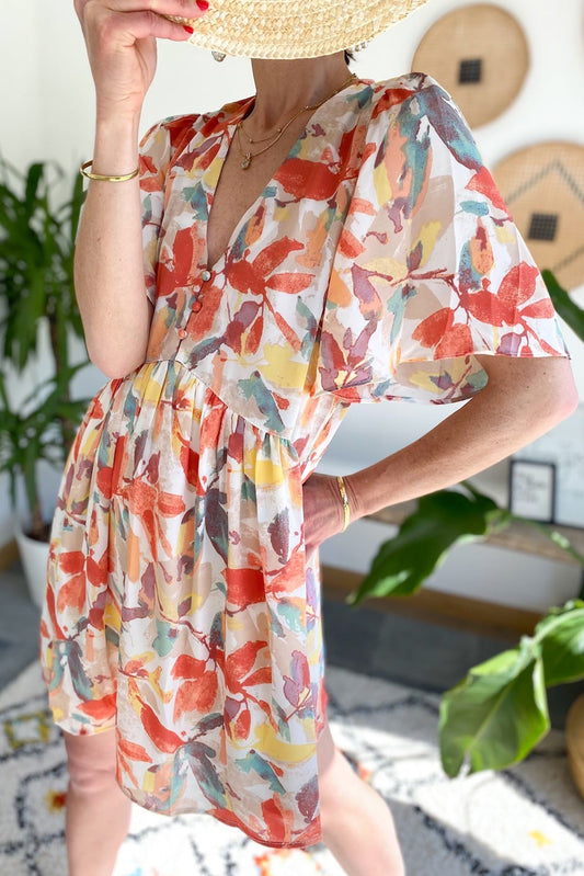 Multicolor Summer Floral Button V Neck Ruffle Flowy Dress