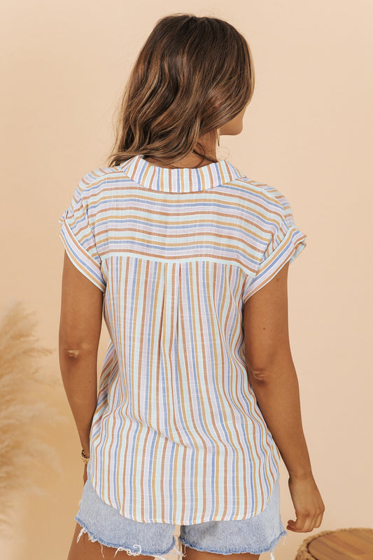 Multicolor Stripe Short Sleeve Button up Shirt