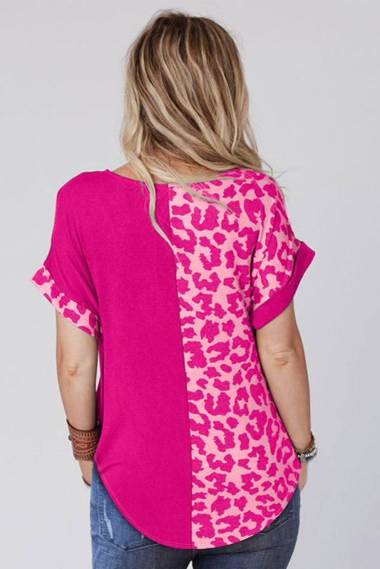 Half Leopard Patchwork Short Sleeves Top