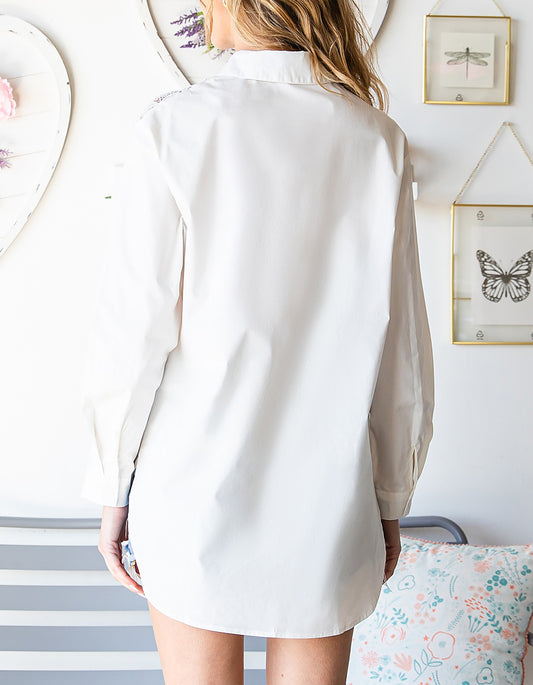 White Floral Print Buttons Tiered Ruffled Short Sleeve Shirt