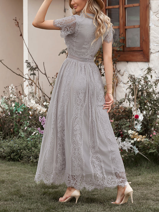 Abstract Print Split Neck Sleeveless Maxi Dress