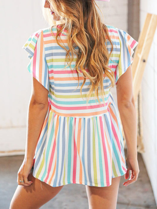 Multicolor Stripe Print Textured Knit Babydoll Blouse