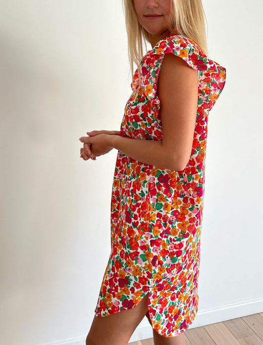 Red Tiered Ruffled Square Neck Sleeveless Floral Mini Dress