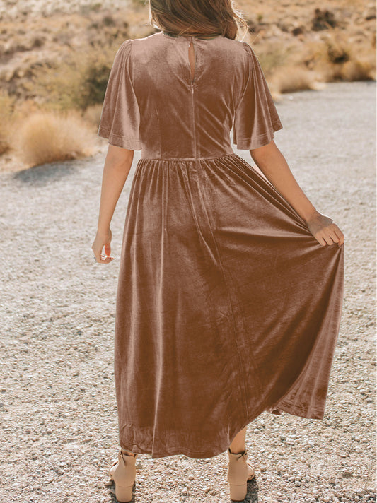 V Neckline Short Sleeve Empire Waist Flowy Maxi Dress