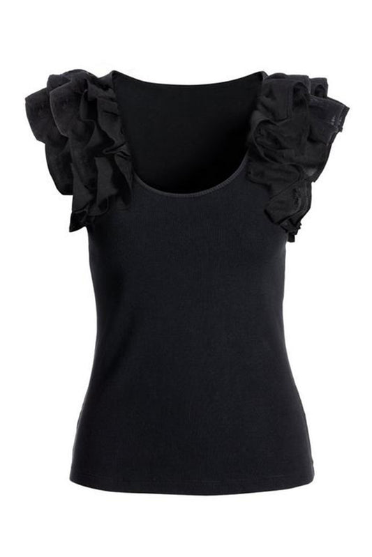 Black Dotty Mesh Splicing Bubble Sleeve Plus Size Top