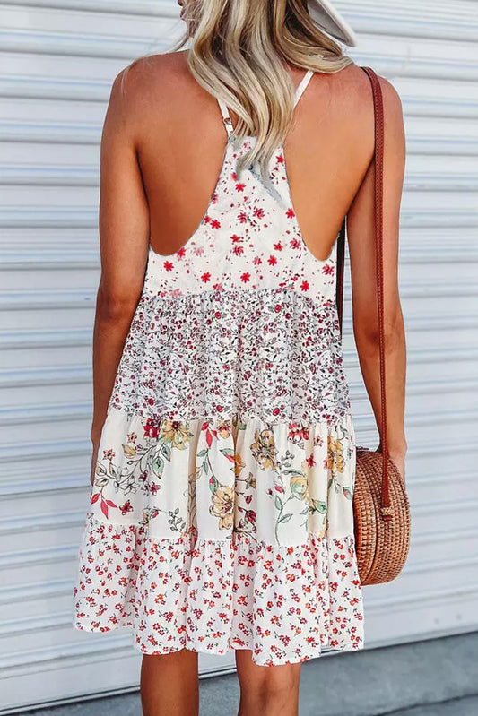 Floral Ruffled Spaghetti Strap Mini Dress