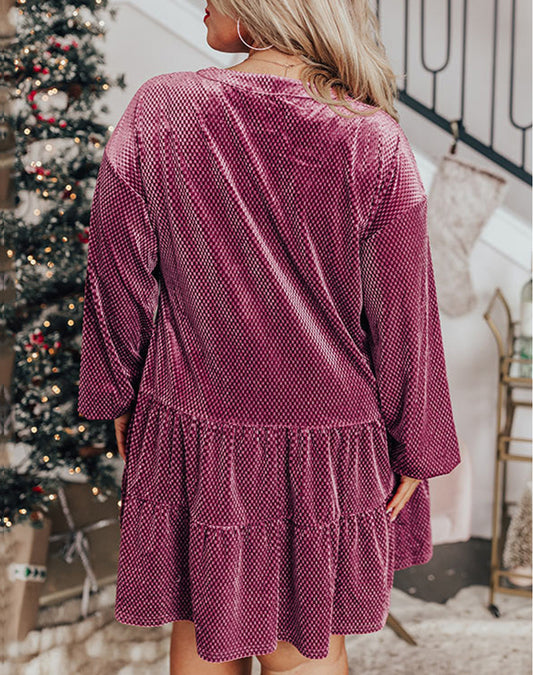 Plus Size Textured Velvet Tiered Buttons Tiered Dress