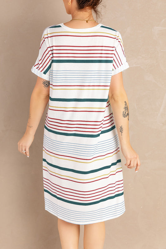 Ribbed Drawstring Ruched Mini Dress with Slit