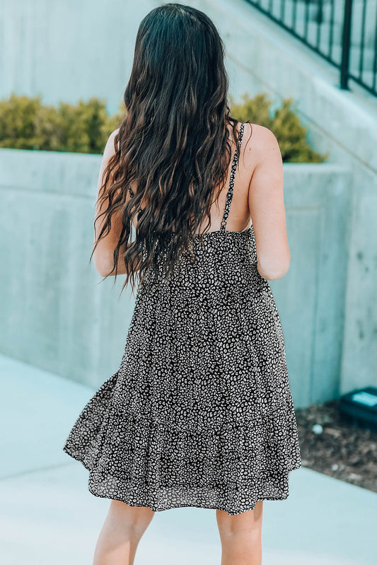 Ruffle Tiered V Neck Wrap Print Mini Dress